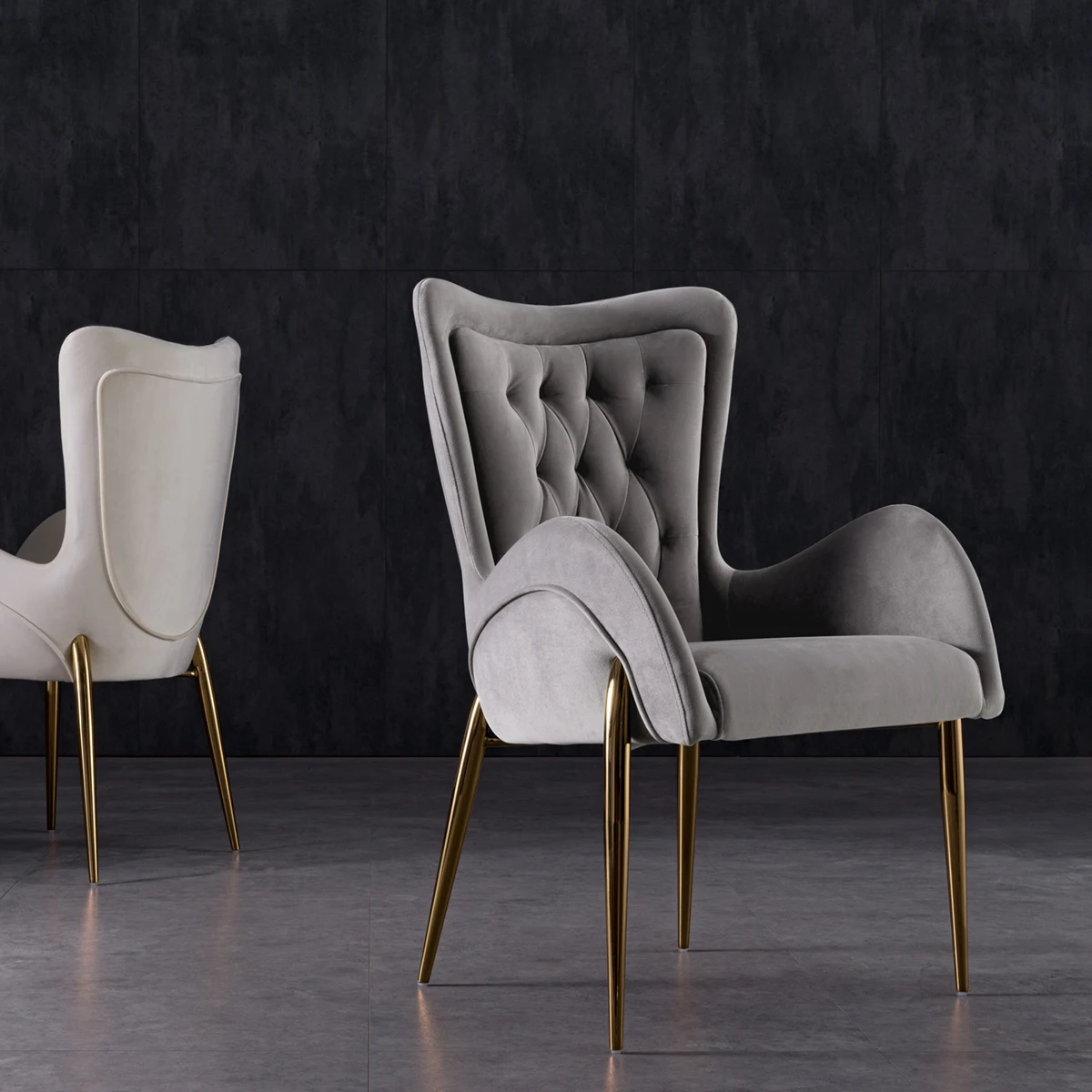 2021 new arrival designers stainless steel gold fancy dining chairs