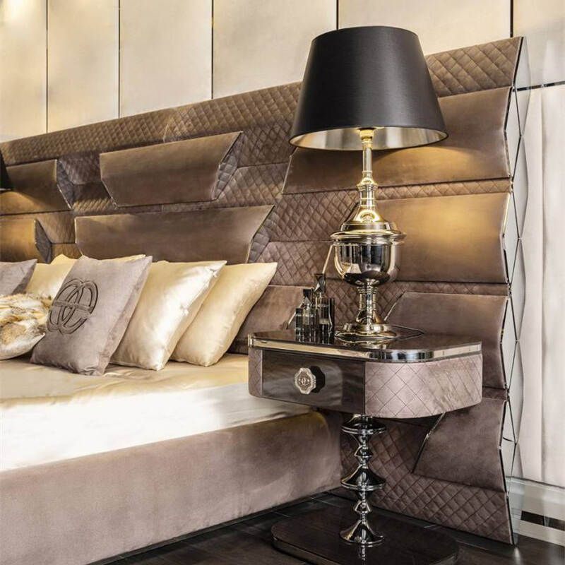 Luxury modern beds designs comfortable sponge durable stainless steel leg king size royal bed