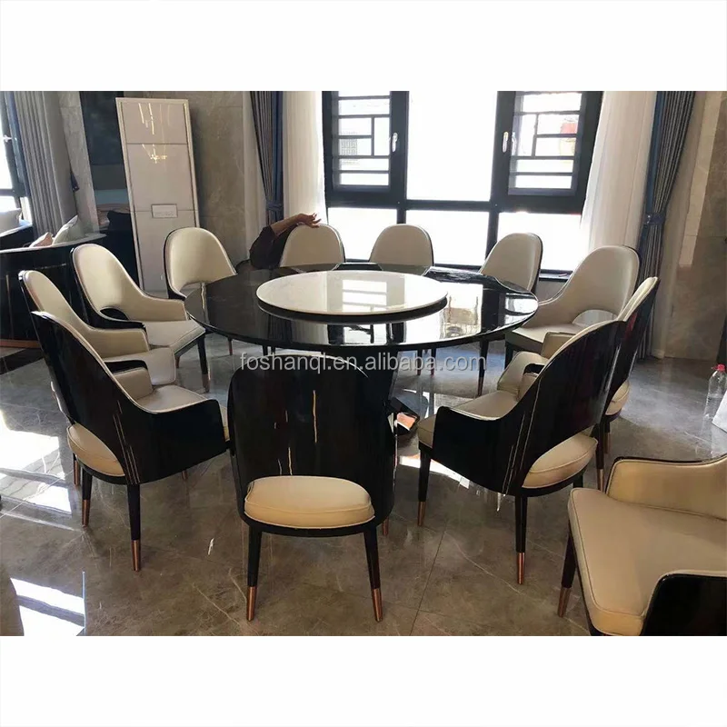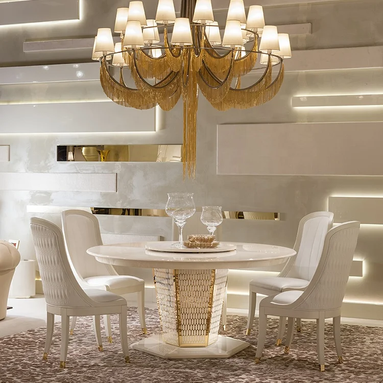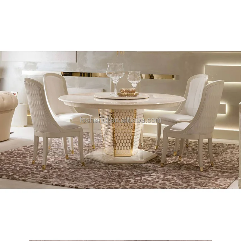 Luxury stainless steel gold round marble lazy susan turntable dining table