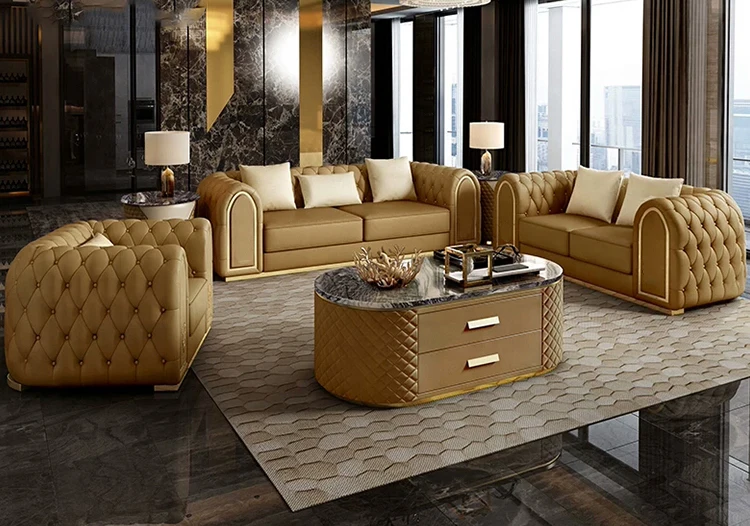 Good Supplier light luxury furniture sofa sets fashionable tufted button sofa office sofas for living room