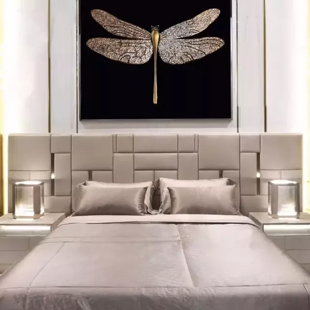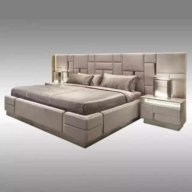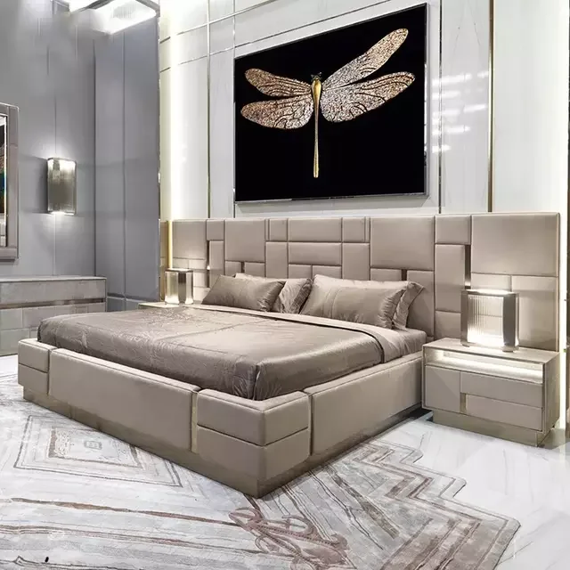 Italian Design Luxurious King Bedroom Furniture Sets Royal King Size Bed Leather Double Bed With High Headboard