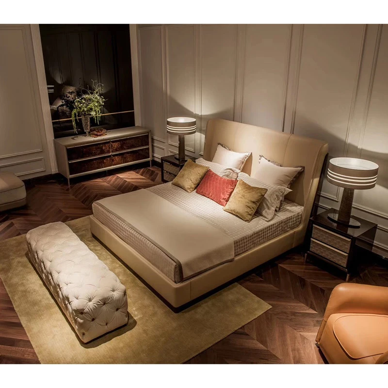Personalized Italian Style Design Lit Cama Diamond Tufted Pattern Bed Luxurious Bed Furniture Home Furniture Bedroom Bed Modern